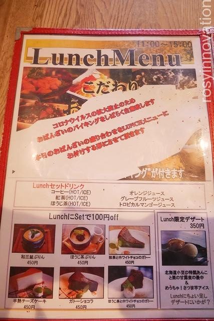 通常時ならランチにおばんざいがついていたのですが、新型コロナウイルス対策のため、訪問時はおばんざいは中止になっていました。