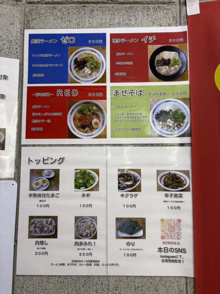 ゼロイチ食堂のメニューはこちら。(2026年2月訪問時)
